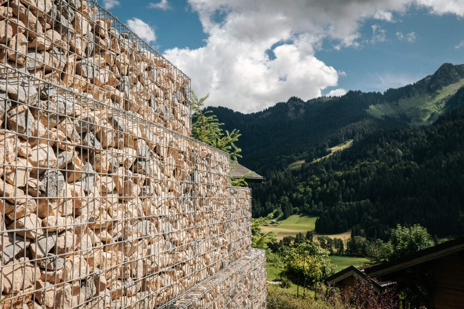 Les murs en gabions sont des cages en treillis métalliques remplies de cailloux beiges ou gris, qui constituent une barrière filtrante pour l’eau de ruissellement. Ils peuvent être utilisés comme mur de soutènement, comme berges artificielles non-filtrantes ou pour décorer une façade ou un terrain nu.